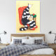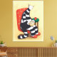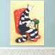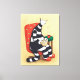 Nerd canvas art i bok med en roligt som illustrerar en konstig, svart och vit strimlad kattvarelse där nacke stannar hemma. Denna märkliga karaktär stannar hemma, fredligt sitta på en orange stol med ögon, avslappning och läsning av ett gigmatiskt bok. Det har en hett kopp kaffe i tofflor som har dekorerats med ögon.