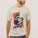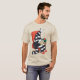 Skjortan från bok älskare med en roligt som illustrerar en konstig med svart och vit strimmig kattvarelse där nacke stannar kvar hemma. Denna märkliga karaktär stannar hemma, fredligt sitta på en orange stol med ögon, avslappning och läsning av ett, enigmatiskt bok. Det har en hett kopp kaffe i tofflor som har dekorerats med ögon.