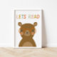 Täck ditt barns sovrum med den här söta och färglösa poster av en björn och meddelandet "låt oss läs". Skriv ut den själv hemma för att få en enkel och prisvärd daghem eller barnlekrumsdekoration. Checka ut eller spara efter matchande poster och gör det till en uppsättning!