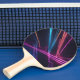 Ljusare magenta, gult, orange och blått linjer som laser ljus på en svart bakgrund skapar en öga-fångande pingpongpaddel. Mycket högteknologisk och modern design!