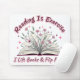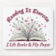 Bräckt, färglöst design med öppna bok med vilda blommor. Den färgstarka texten lyder: "Läsning är motion. I hiss bokar & flip page". Den här utformningen är tillgänglig för en mängd olika produkter.