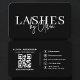 Promote your lash business with this modern typography business card, designed for professional eyelash technicians and lash artists. Featuring a built-in QR code, this card allows clients to instantly book appointments, view your lash portfolio, or follow your social media. Clean, bold typography delivers a sleek, modern look while keeping your contact details clear and professional. Fully editable and print-ready for salons, studios, and personal branding.