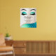 Lash Eyelash Makeup Poster Eyebrows Söt Ögon Moroccan Mönster med skuggan grönt öga och långa ögonfransar och bakgrunden till pärlsatatin.