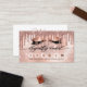 Modern, chic, trendig Ro Guld Lash-förmånskort. Konstruktionsfunktioner faux glitter drops och ögonfransar med ro guld faux foil, glatt bakgrund från glitter och typografi. Anpassa med din rabattinformation på framsidan och kontaktinformation på baksidan.