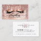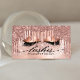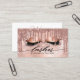 Modern, chic, trendiget Ro Guld Lash-affärskortet. Konstruktionsfunktioner faux glitter drops och ögonfransar med ro guld faux foil, glatt bakgrund från glitter och typografi. Anpassa med ditt namn på framsidan och kontaktinformation på baksidan.