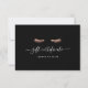 visningar för presentkort för chic med två linjer anpassningsbar som fylls av ett lush-par med streck i folie för ro guld på svart bakgrund. Lägg till önskad ordalydelse för presentcertifikatet och kontaktinformation för företag på baksidan, kompletterad med ett motsvarande par ögonfransar. Ett modernt och elegant val för salonger, makeup artister, estetister eller lashspecialister.