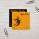 Fyrkantigt affärskort eller personligt samtalskort i orangens bakgrund med en skrämmande häftig häxa. På baksidan av kortet är färg omvänt. Det är lätt att anpassa båda sidor med detaljerna i din egen häxa eller magiska verksamhet. Clip art från Zazzle Typsnitt disposition av Alma Wad Det kommer 100 per förpackning.