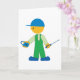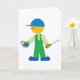 Denna design är en låssmed. Låssmeden har ett lås i ena handen och en skruvmejsel i den andra. Denna låssmedsdesign ser bra ut på detta Välkomstkort