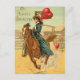 Vintagevalentinillustration av en flicka på hästryggen som lassoing en hjärta. Avbilda har försiktigt återställts till mest fin kvalitets-.