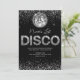 En roligt retro diskodde in inbjudan och färdväg för bachelorette helg. Observera att uppgifterna om silver glitter simuleras.