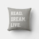 Läst dröm direkt. Grå vittext. Sparrebaksida Kudde