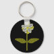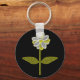 Den här nyckelkedjan för söt blommigt innehåller en digital bild av en daisy med en grönt med två löv på grönten och vita och gult färgader med en gult. Pälsen ser ut som om de har en vacker reflekterande kvalitet. Blomman står på en svart bakgrund för maximal kontrast och resultatet är häpnadsväckande.