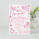 Giddy up, ladies! Celebrate the bride-to-be with this trendy "Let’s Go Girls" Disco Cowgirl Bachelorette Invitation. Featuring a vibrant hot pink color palette, playful western illustrations (like horseshoes, cowboy boots, and cacti), and a shimmering disco ball, this suite is perfect for a Nashville, Austin, or Scottsdale weekend. This double-sided design includes a formal invitation on the front and a full weekend itinerary on the back, making it easy for your "I Do" crew to keep track of every brunch, horseback ride, and line dancing session. Whether you’re calling it a "Last Rodeo" or a "Nashville Bach," this editable template is the ultimate way to set the vibe for a neon-lit weekend!