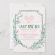 This retro "Last Swing Before the RIng" bachelorette weekend itinerary invitation features a pair of pink racquets surrounded by a botanical frame in green. The reverse side features an itinerary a green background with white polka dots. Personalize for your needs. You can find more matching products at my store.