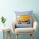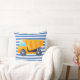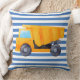 Gult Lastbil Square Cushion med blått och vitt rand.