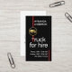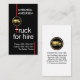 Ett svart omslag har kreativet "lastbil for hire"-skylt som har en logotyp i guld lastbil som du kan använda med. Över överst ljuger ditt prestigefyllda namn med kontaktinformationen nära kortets bas. På andra sidan, i ett vitt omslag, längst upp finns logotypen lastbil, följt av er prestigefyllda namn, kontaktuppgifter och ett sloganalternativ. Ett underbart kort för lastbil-förare till använda. #trucker #truckdriver #trucking #transport #logistics #transporationandlogistik #supplychain #flytta #transporservice #truckforhire #zazzlemade