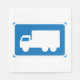 Ett vägskylt i lastbilar med ett stort vitt lastbil på det. Den här designen ser ut att vara effektiv på dessa Pappra servetter