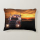 Stor rigg, person som drar en skottkärra som 18 är halv….,vad du appellen det trevliga lastbilsförare kudder någonsin med en resning- eller inställningssol i bakgrunden
