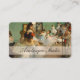"The Dance Class" (ca 1870) är ett verk av Fransk impressionist målare Edgar Degas. Den här produkten har en detaljdel av den målningen, som skildrar unga balettdansare som repeterar i den gamla Paris Opera när instruktionen noga följs. På affärskortets framsida finns bilden i muterad, föråldrad grönt, tan, persiko och röd. Den undre fronten har också en rektangel med blekar på vilken du kan ställe en textrad, t.ex. ditt namn eller ditt företag. Kortets baksida skuggas av en blek som är peachy-rosa med plats för flera linjer text, helt anpassade med hjälp av de enkla, medföljande mallarna.
