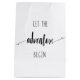 Svart och vit typografi citerar "låt äventyr börja".