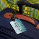 Låt äventyret börja har berg och träd bagagetikett. Lägg till din adress på baksidan.