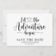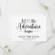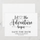 Enkel modern trendig skript typografi låt äventyret börja spara datum tillkännagivande att anpassa för ditt bröllop. Låt äventyret börja tema.
