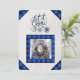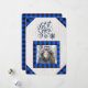 Bedårande ”Låt det snö”-foto Julkort med blå buffelrutig inramad bild och det trimmar kanterna på detta bedårande och pittoreska kort.
