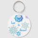 Är du trött på hettan och redot i snö? Här är nyckelringen bara för dig! Texten lyder: "Låt det snöa! & omges av snöflingor i blå och vit övertoning. Precis som i naturen är varje snöflinga olika.