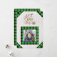 Bedårande ”Låt det snöa” foto julkort med grön buffelrutig inramad bild som prydder kanterna på detta bedårande och pittoreska kort.