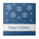Vitaktig och roligt Låt det snöa Helgdag Tile i royal blå med en kaskad av hand plockade snöflingor. Denna dekorativa bricka i roligten skulle göra en underbar helgdag. Enkel att anpassa, lägg bara till den personlig du väljer.