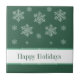 Whimsical och roligt Låt det snöa Helgdag Tile på mörk grönt med en kaskad av hand plockade snöflingor. Denna dekorativa bricka i roligten skulle göra en underbar helgdag. Enkel att anpassa, lägg bara till den personlig du väljer.