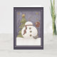 En snögubbe på en vinternatt som tittar upp in i himmlen som håller ögonen på snökomen, besegrar. Bak honom tittar en julgran och en birdhouse och en kall pippi vid hans "fot". En primitiv landkonstdesign för dina säsongsbetonade hälsningar, fullständigt anpassade - och det finns ett portofrimärke som ska matchas som väl!