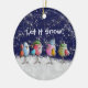 En rolig prydnad som delar dina helgdaghälsningar. En kvartett av färgrika tecknadfåglar, som synes som inte för är intensiv på det södra flyget denna vinter, prydas, ut i deras vinterskrud och att stödja sig för snön. Skräddarsy denna prydnad, genom att ändra textfälten för en riktigt unik minnessak. Tyck om snön!