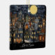 Vintage illustration av en stad i quaint byggnad nattetid med LÅT DET SNÖA text. Offentlig domänavbildning.