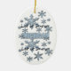 En grafisk design av snöflingor av konstnären/designern Charmaine Paulson på en julprydnad. Ornamenten har texten "Låt det snöa Michigan " och mallar för din anpassning.