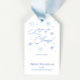 Höj presenten ge med dessa högkvalitativa märkre med vattenfärger som innehåller ett handmålat snöflingor och ett modernt teckensnitt för kalligrafi som stavar ut "Låt det snöa". Förutom hälsning finns det också utrymme för att lägga till mottagaren namn i hand efteråt (detta kan ändras inuti designen verktyg). Det omvända är ett krissituerat, blå och vit mönster med samma vattenfärg snöflingor.