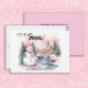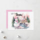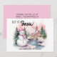 Cute rosa snögubbe med en bakgrund av berg täckta av snö och ett gammalt julkort/Julhälsningar kyrkkort. Anpassningsbarna säger: "Låt det snöa". Anpassa till din familj namn och all annan text du väljer.