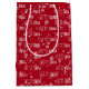 Vit LÅT DET SNÖA text med snöflingor på röd bakgrund. Text kan redigeras. Bakgrunden till färg kan ändras.
