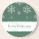 Kvicksilver och roligt Låt det snöa Helgdag på mörk grönt med en kaskad av hand plockade snöflingor. Den här underlägg av sandsten i roligten är perfekt för att lägga lite säsong till någon dekoration samtidigt som du skyddar dina möbler. Enkel att anpassa, lägg bara till den personlig du väljer.