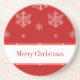 Vitaktig och roligt Låt det snöa Helgdag i ljust rött med en kaskad av hand plockade snöflingor. Den här underlägg av sandsten i roligten är perfekt för att lägga lite säsong till någon dekoration samtidigt som du skyddar dina möbler. Enkel att anpassa, lägg bara till den personlig du väljer.