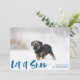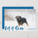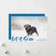 Låt det snöa det moderna penselblåa skriptet, helgdag-fotokort. Kortets baksida har snö övertäckning på fast matchande blå färg.