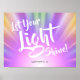Den här poster en inspirerande bibel jämfört med Matthew 5:16 "Let Your Light Shine". Bakgrunden är vackra ljusstrålar i färgaden. Den vita texten visas i ett trendig handskrivet stil.