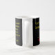 "Låt ditt ljus skina.." Bible Verse mugg. Kaffet mugg har en svart bakgrund. Jesus Namn är skriven i rött på mugg framsida. "Låt ditt ljus så skina.." står skrivet i god gult på framsidan. Och "Låt ditt ljus skina före manar, så att de kan se din bra fungera och glorifiera Far som ligger i himlen" och Matthew 5:16 (KJV) är skrivna i ljust gult brev på baksidan.