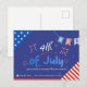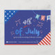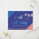 Fira självständighetsdagen med detta minimalistiska men festliga inbjudningskort. Den djupblåa bakgrunden sätter scenen för den djärva "Happy 4th of July"-texten i ljusblått och vitt. Minimalistiska illustrationer av smällare och stjärnexplosioner i rött, vitt och blått lägger till en touch av fyrverkeri-flair. Hängande vimplar med bokstäverna "U", "S" och "A" och triangulära sektioner med stjärnor och ränder hyllar den amerikanska flaggan. Denna design hittar den perfekta balansen mellan enkelhet och patriotism, vilket gör den till ett idealiskt val för dina 4 juli-firande inbjudningar.