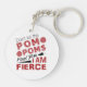 Skjutspetskonstruktion med pom poms-grafik och roligt ordspråk.