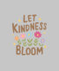 En glad digital illustration med färgstarka blommor som växer under det upplyftande budskapet "Låt kinness Bloom". Texten är i ett varmt brunt färg, omgivet av små gnistrande accenter, som förstärker temat positivitet och vänlighet. Den här utformningen främjar medkänsla, tillväxt och ökad vänlighet.