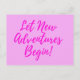Låt nya äventyr börja, motiverande vykort i rosa.