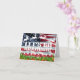 LÅT OSS ÅKA BRANDON! [Font 3] Julkort med stjärnor och ränder, med julgran och bär, och flygande renar. Låt oss åka Santa!