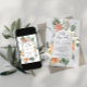 Eleganta blommiga inbjudningskort för morsdagsbrunch, lunch eller middag med akvarellblommor och tropisk lövverk. Oavsett om du planerar en stor fest eller en liten sammankomst, passar våra tropiska blommiga inbjudningar garanterat temat.