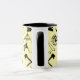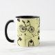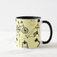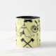 Vi går och campar i mugg. Utformning med illustrationer av campingartiklar. Svart illustrationer mot bakgrund av gulten. Underbar utformning för utomhusentusiasten.